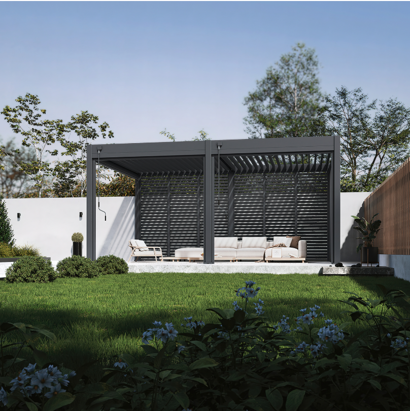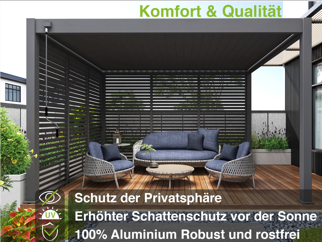 - Einfache Anpassung: Kann links, rechts oder an mehreren Seiten der Pergola angebracht werden.